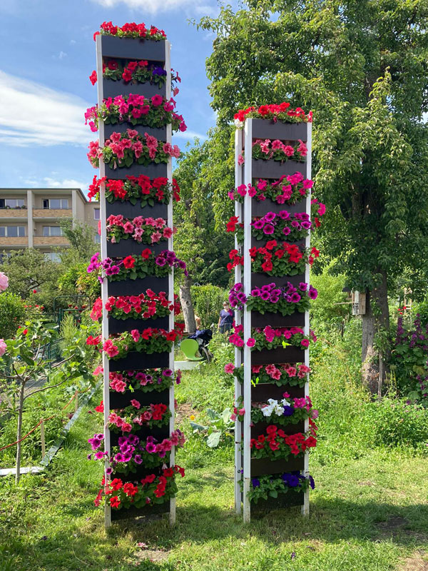 bloomtown new cologne is a groundbreaking urban development design for a booming urban quarter. Yields in the height, no displacement in the lower class. These twin towers in the allotment garden wild rose are not made of concrete gold but still want to reach high heights. They can only be flown to by birds, enrapture the neighbouring woman and save the world.The installation can be viewed analogously, in compliance with the rules for public spaces.